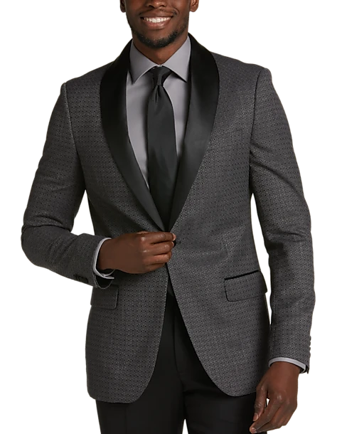 After Hours Slim Fit Shawl Collar Jacquard Dinner Jacket, Black Geometric