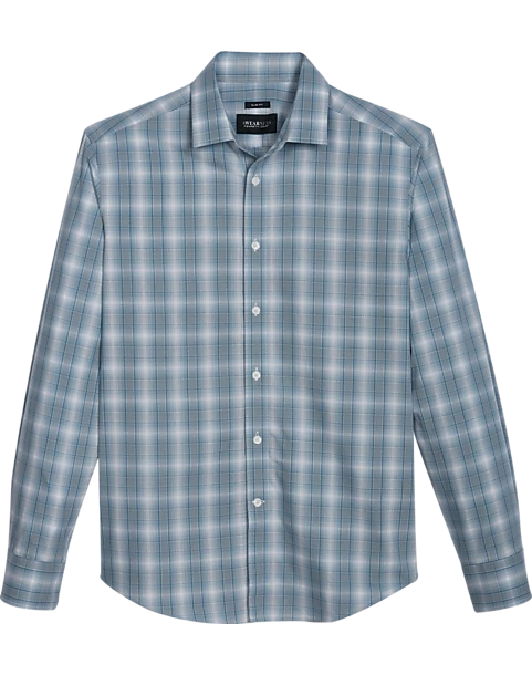 Awearness Kenneth Cole Slim Fit Spread Collar Sport Shirt, Teal Ombre Plaid