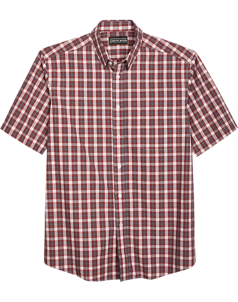 Haggar Life Khaki Modern Fit Short Sleeve Sport Shirt, Red Plaid