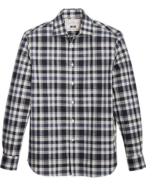 Joseph Abboud Modern Fit Slub Sport Shirt, Navy Plaid