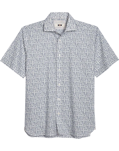 Keep your cool when the weather warms up with this breathable, cotton-blend sport shirt from Joseph Abboud. A graphic print brings eye-catching interest to the design.