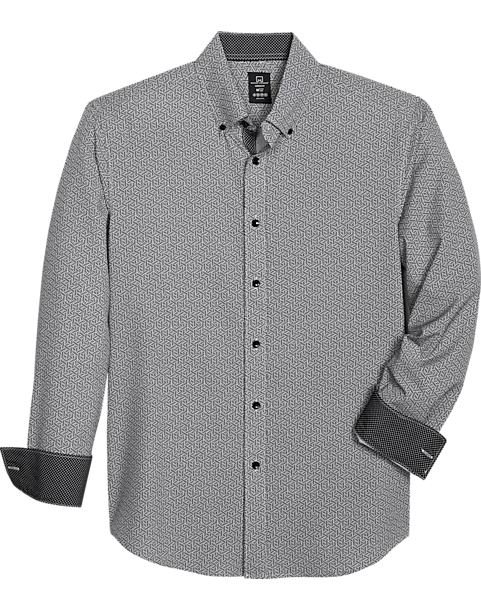 Michael Strahan Four-Way Stretch Modern Fit Sport Shirt, Black Geo-Pinwheel