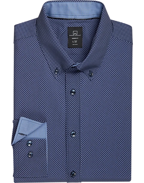 Michael Strahan Modern Fit 4-Way Stretch Dress Shirt, Blue Dot