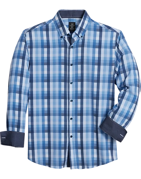 - 86% polyester 14% spandex|Button-down collar|Four-way stretch fabric|Modern Fit|Michael Strahan|
