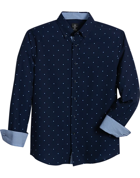 Michael Strahan Modern Fit Button-Down Collar 4-Way Stretch Sport Shirt, Navy Stars