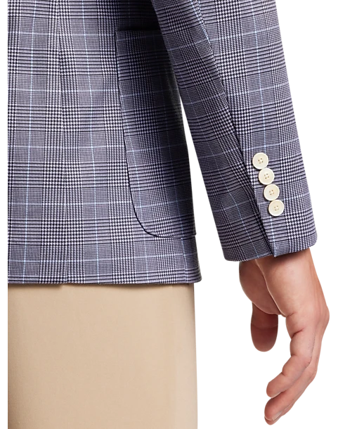 Michael Strahan Modern Fit Notch Lapel Crepe Knit Soft Jacket, Pink Glen Plaid