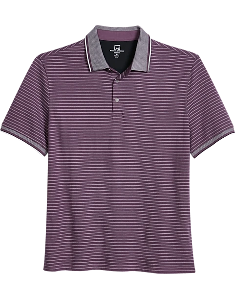 Michael Strahan Modern Fit Short Sleeve Polo, Purple Stripe