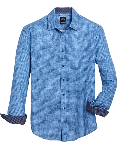 Bold and sporty in a navy gingham pattern, this standout sport shirt from Michael Strahan features a trim, Modern Fit, contrast lining in the cuffs, and a comfortable performance fabric with 4-way stretch.