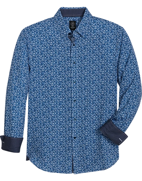 A floral print and contrasting cuffs bring a fashionable look to this sport shirt from Michael Strahan without becoming overly fussy. Four-way stretch construction flexes with your every move.