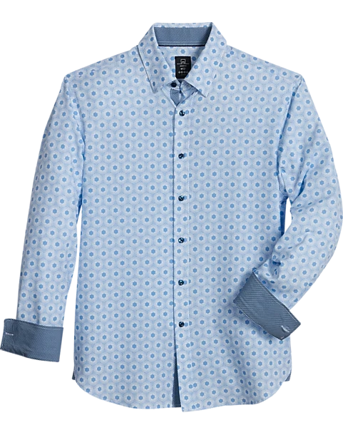 Michael Strahan Modern Fit Spread Collar 4-Way Stretch Sport Shirt, Blue Hexagon