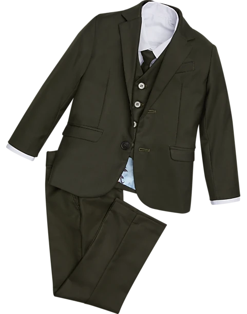 Dress your little gentleman in big guy style with this five-piece complete tuxedo set. Tailored with a Slim Fit, this stylish children’s suit is perfect for weddings, especially for ringbearers, and any other formal wear occasion. This handsome collection features a dress shirt, pre-tied tie, vest, coat, and slacks.